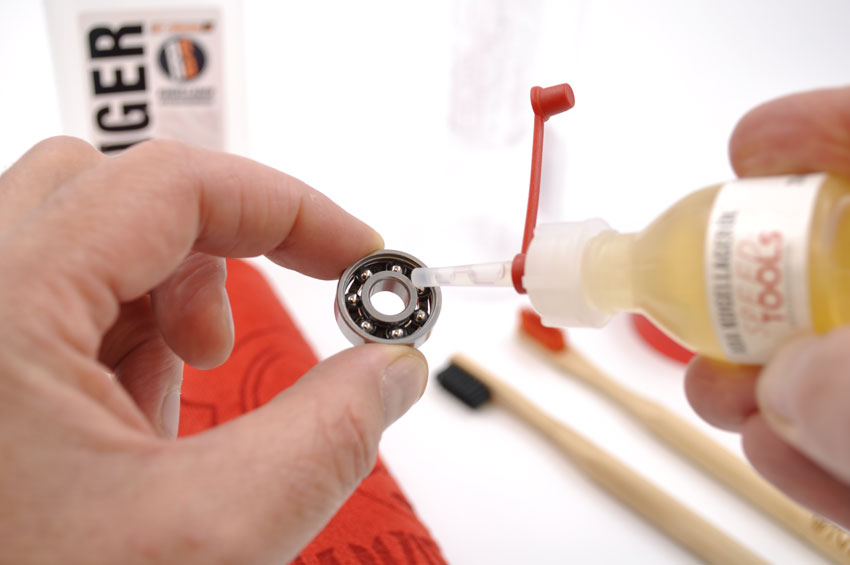 Jedes Kugellager benötigt nach einer gewissen Zeit etwas Liebe und Zuwendung in Form einer Reinung und neuer Schmierung. Das Schmiermittel deiner Lager braucht sich auf und Staub und Schmutz hindern die kleinen Kugeln beim ungestörten Rundlauf. Schon ein Regenschauer kann bei einem ungeschmierten Kugellager zu Flugrost führen, was die Laufeigenschaften ganz erheblich beeinträchtigt oder die Lager sogar unbrauchbar macht. Aber auch beim Skaten auf trockener Straße sammelt sich nach einiger Zeit Dreck im Lager-Innenraum. Deshalb sollten die Lager regelmäßig gründlich gereinigt werden.