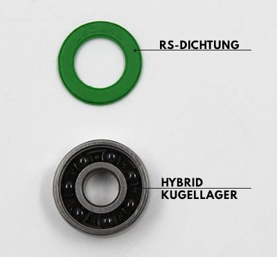 Besonders beliebt bei Wettkampfskatern sind Hybrid-Lager, die einen Materialmix aus Stahl (Lauffläche) und Ceramic (Kugeln) auszeichnet. Der Grund: Kugeln aus Keramik verformen sich deutlich weniger als Stahlkugeln und sorgen so für sehr stabile Rundlaufeigenschaften auch bei hohen Druckbelastungen. Hybrid-Kugellager sind sehr schnell. Wie jedes Lager sollte auch dieser Typ regelmäßig gereinigt und geschmiert werden.